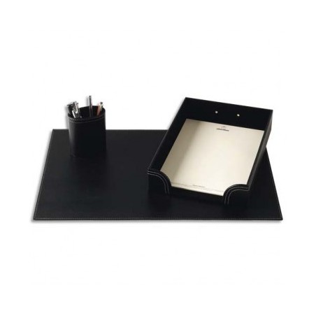 OBERTHUR Parure de bureau Classique 3 pièces. Grain cuir noir
