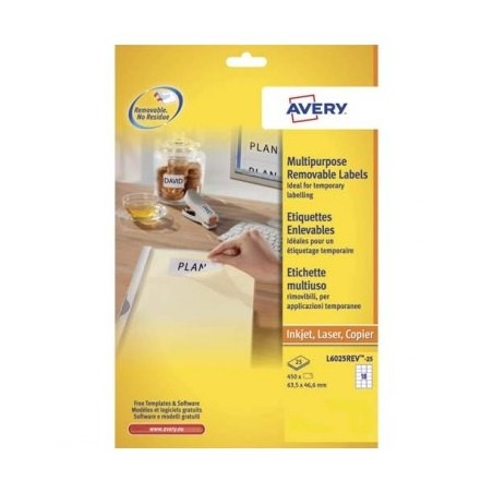 AVERY Boîte de 400 étiquettes laser enlevables 63,5 x 46,6 mm L6025REV-25