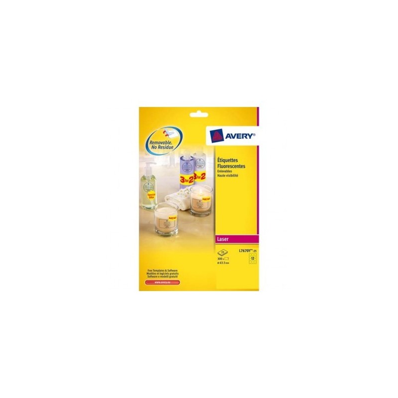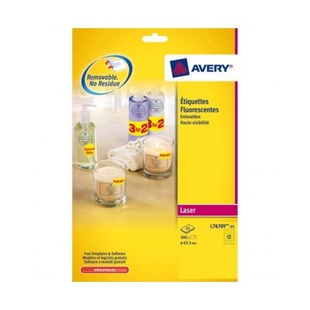 AVERY Boîte de 300 étiquettes laser jaune fluo diamètre 63,5 mmL7670Y-25