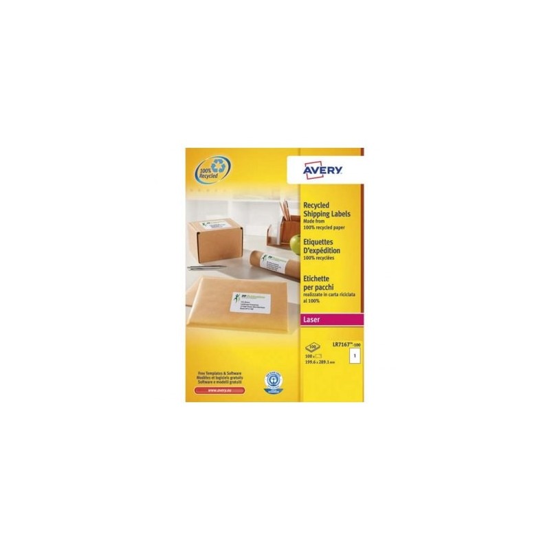 AVERY Boîte de 100 étiquettes adresses laser recyclées blanc 199,6 x 289,1 mm LR7167-100