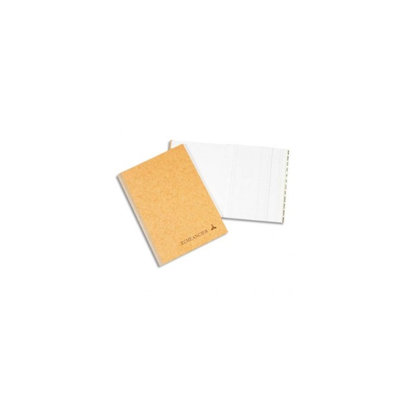 La piqûre est un cahier cousu avec un dos toilé et une couverture en carte lustrée. Coloris assortis : bleu, vert, jaune, rouge. La brochure ou le corrigé sont un ensemble cousu de plusieurs cahiers avec un dos carré et toilé, et une couverture en carton. La couverture de la brochure est en papier marbré, coloris assortis : rouge, vert, bleu, blanc. La couverture du corrigé est recouverte d’un papier teinté. Coloris assortis : rouge, bordeaux, vert, bleu, marron. Le registre est un assemblage cousu de plusieurs cahiers avec un dos arrondi et une couverture en carton recouverte de pleine toile. Coloris : noir. Les réglures sont en quadrillé 5 x 5 ou travers (ligne horizontale) ou journal folioté. Le foliotage est le numérotage des pages. Echéancier.