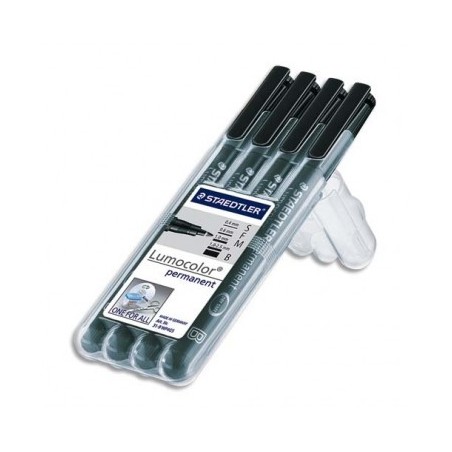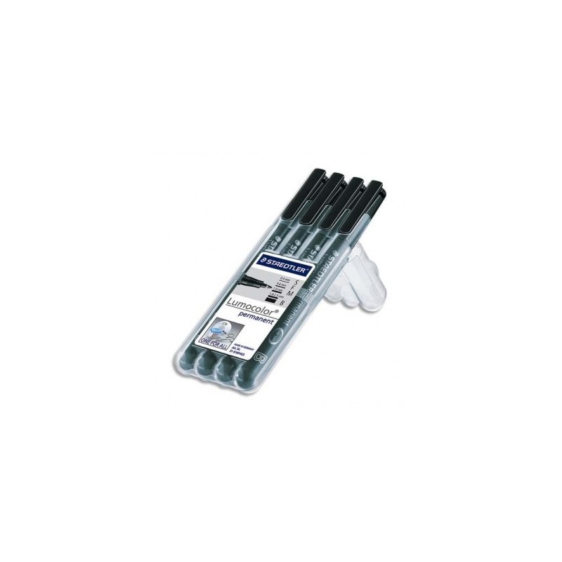 STAEDTLER Pochette 4 feutres Lumocolor permanent Noir, 4 pointes assorties: superfine, fine, moyenne, biseautée