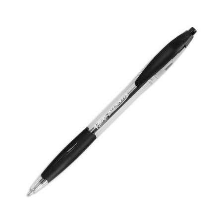 BIC Stylo à bille rechargeable pointe moyenne rétractable encre noire corps transparent et grip ATLANTIS